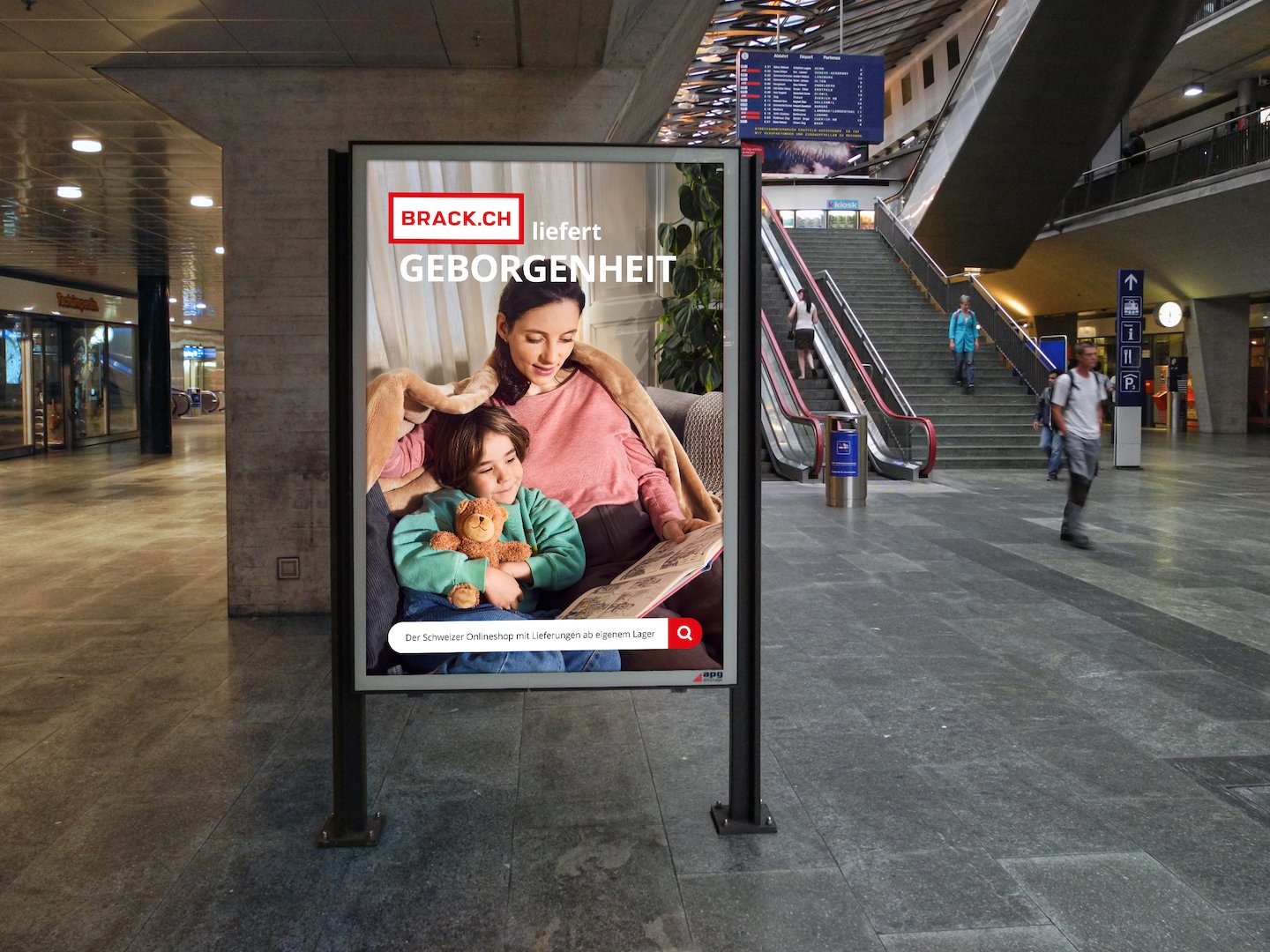 Für die Bewegtbild- und Out-of-Home-Kampagne wurde BRACK.CH ein authentischer, natürlicher Look verliehen. Die Kampagne gewährt Einblick in das normale Alltagsleben der Schweizerinnen und Schweizer: entspannt, unaufgeregt und lebensnah. Situationen, wie wir sie alle kennen, die gute Gefühle auslösen. Ob Mama und Sohn beim Kuscheln auf dem Sofa, zwei Teenie-Girls, die sehnsüchtig auf eine neue Nachricht des Schwarms warten oder ein spannender Krimi-Abend, der für Adrenalin pur sorgt. Für all diese Situationen gibt es auf BRACK.CH die passenden Produkte inklusive ausgezeichnetem Service.
