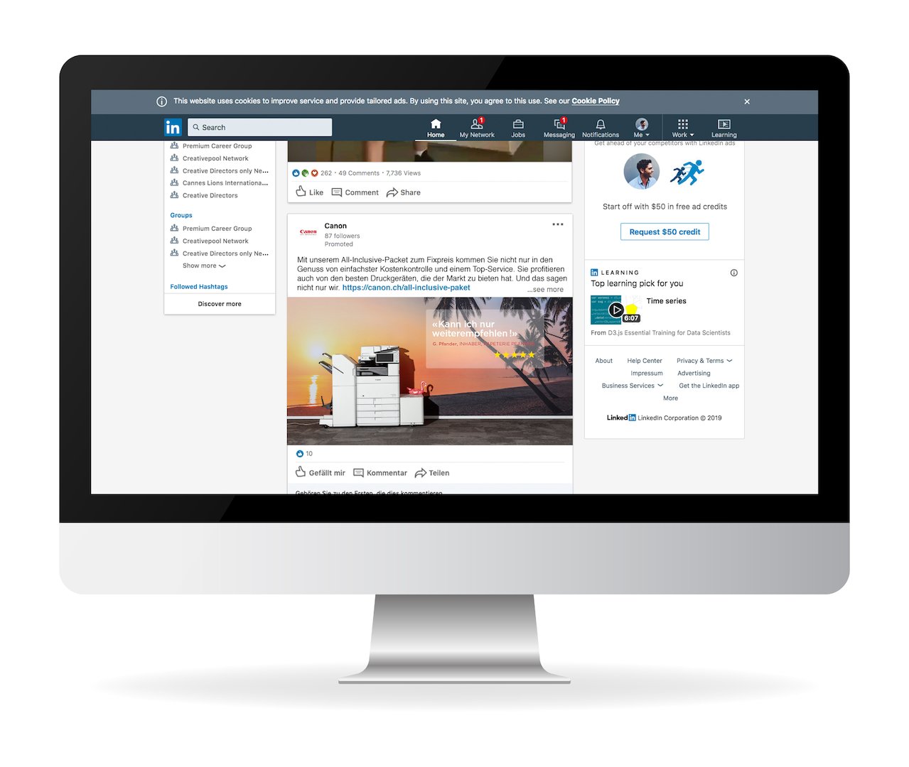 Wie zeigt man im technischen Umfeld die Vorteile einer Service-Innovation auf und kommuniziert gleichzeitig USPs auf Produktebene? Mit einer vifen Metapher, einer vollautomatisierten Kampagne und einem Touch Urlaubsfeeling. So haben wir für Canon eine B2B-Kampagne entwickelt, die nicht nur ihren einmaligen Flat-Rate-Service beschreibt, sondern diesen auch noch in ein kreatives Umfeld integriert. Und das komplett automatisiert, über alle relevanten Touchpoints.