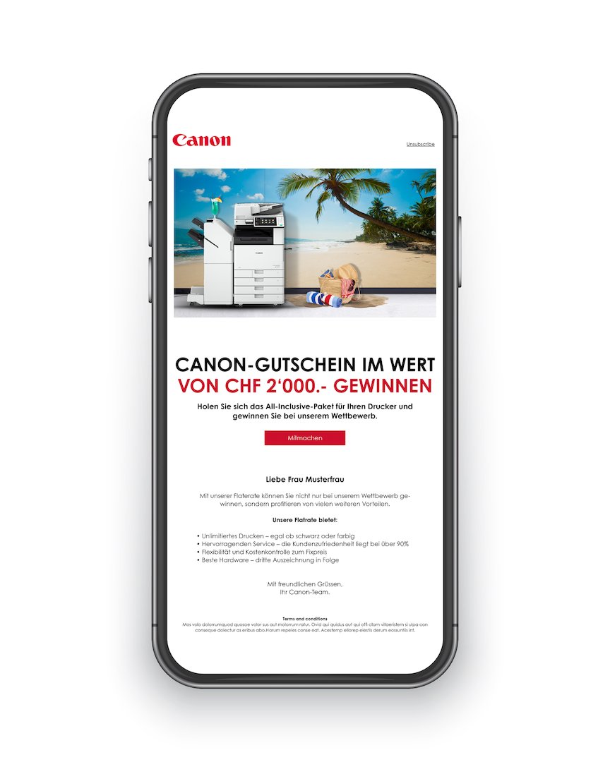 Durch die Marketing Automation konnten einerseits Kosten gespart, anderseits die oft proklamierte Customer Centricity mit persönlicher Ansprache und relevanten Botschaften zum richtigen Zeitpunkt gelebt werden. Wir haben es geschafft, die Vorteile der Canon-Flatrate mit cleveren Sujets in der echten Welt zu spiegeln und sie ohne Umwege nicht nur zu erklären, sondern auch gleich emotional aufzuladen. Das soll erst mal jemand kopieren.