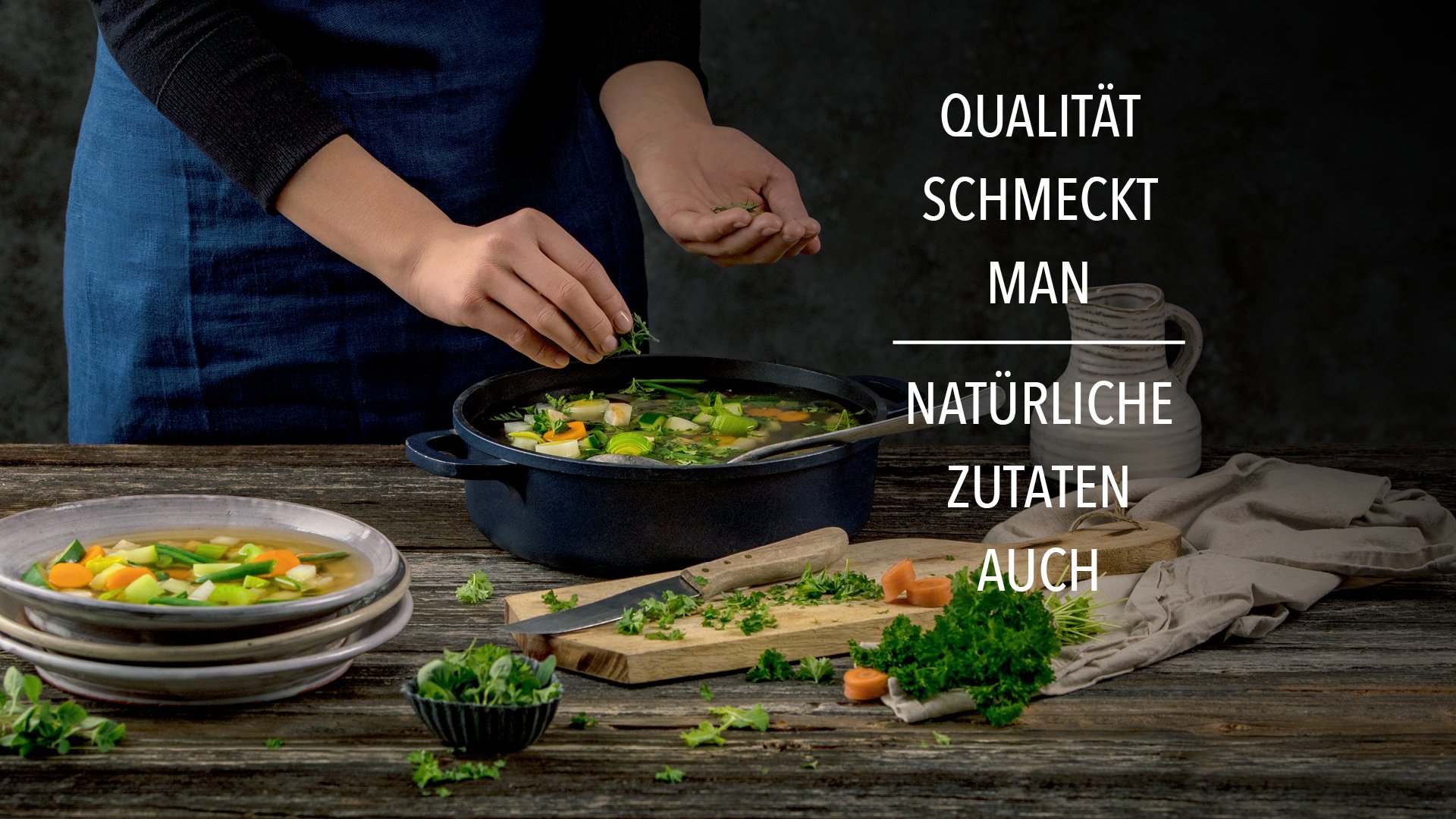 Wir haben in einem Workshop 3 Brandstories erarbeitet, welche auf zuvor definierten Thesen basieren und diese Brandstories mittels Growth-Hacking-Methode getestet. Als Resultat dessen wurde die Leitidee «Die Schweizer Kunst des Kochens» geschaffen, welche bei iterativem Testing im Schweizer Markt die Bestnote erhielt. Aufgrund der neuen Positionierung sowie der neuen Leitidee wird das Logo angepasst, sämtliche Werbemittel neugestaltet, ein Headline-Duktus ausgearbeitet und ein neues und umsetzungsfreundliches CI/CD erstellt.