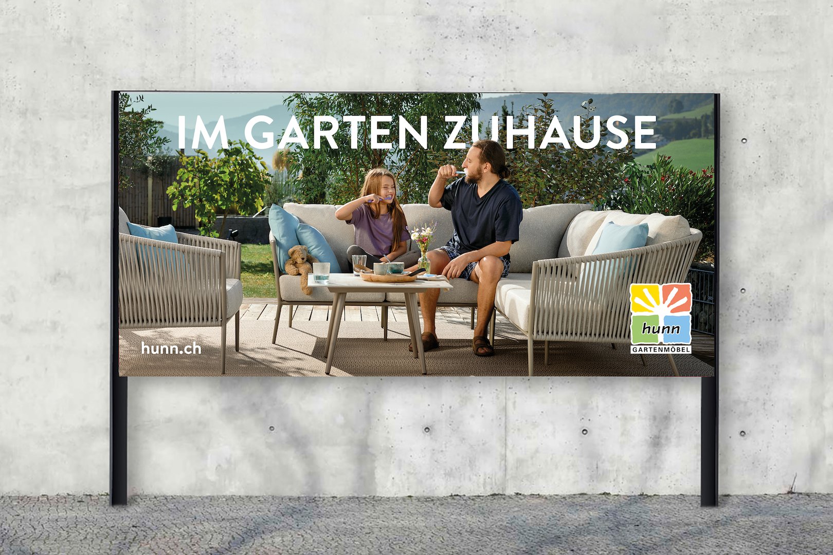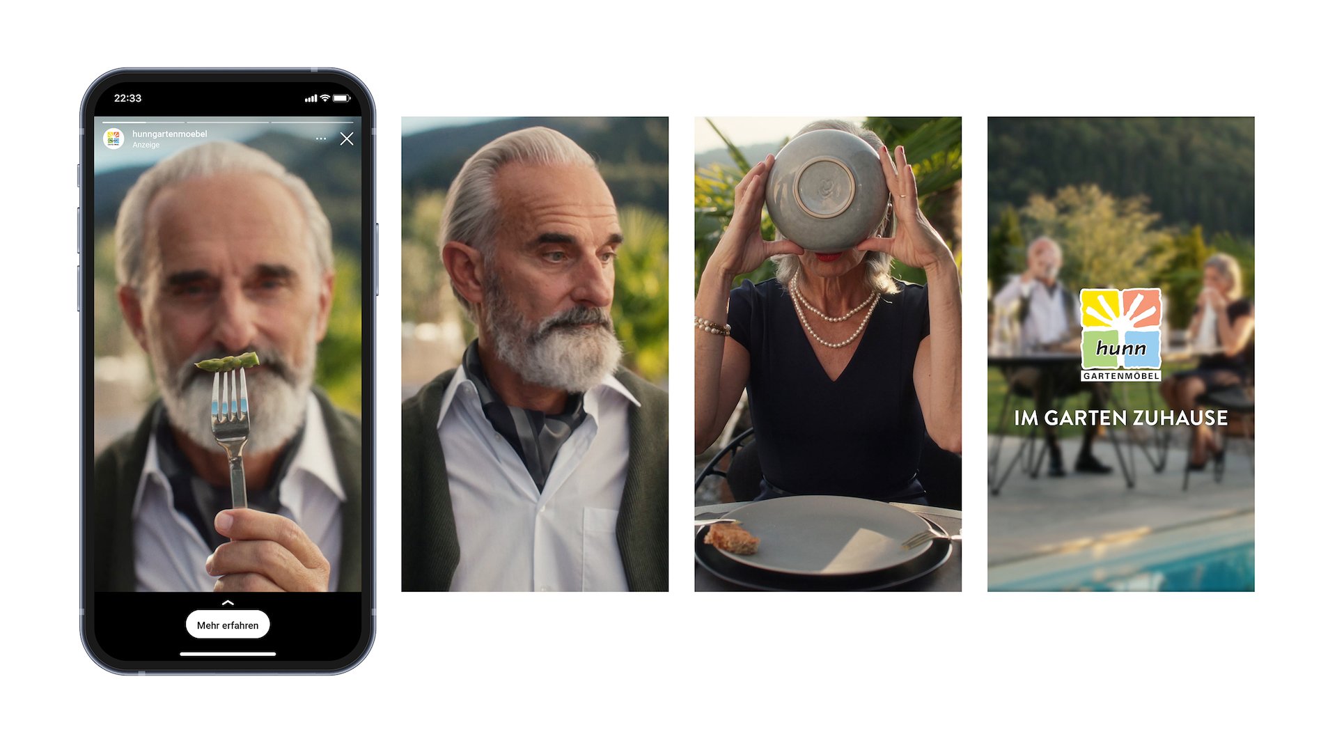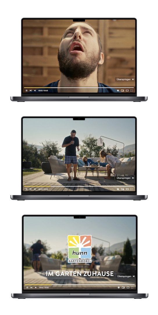 Pünktlich zum Gartensaison-Start war die Kampagne im TV, auf Youtube, Instagram, Facebook, in Form von Display-ADs sowie OOH und DOOH on Air. Auf humorvolle Art konnten Hunn Gartenmöbel als der Ort positioniert werden, der aus Gärten ein Zuhause macht, in dem man sich so richtig wohl fühlen kann.