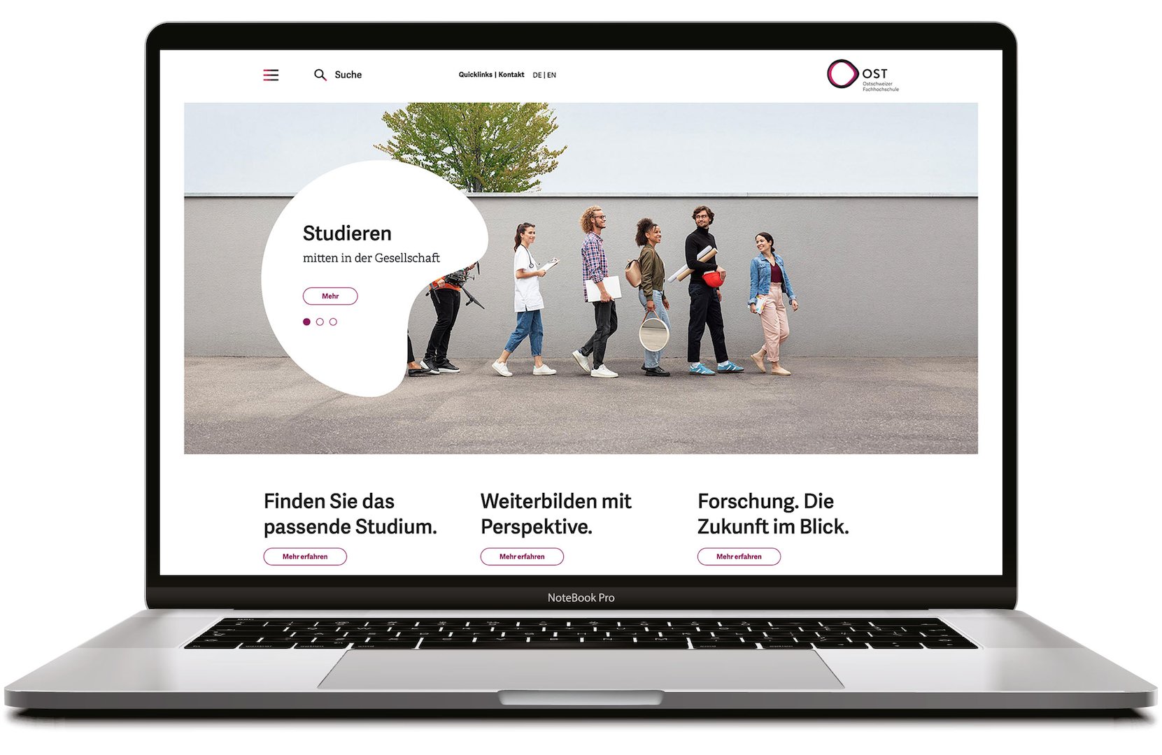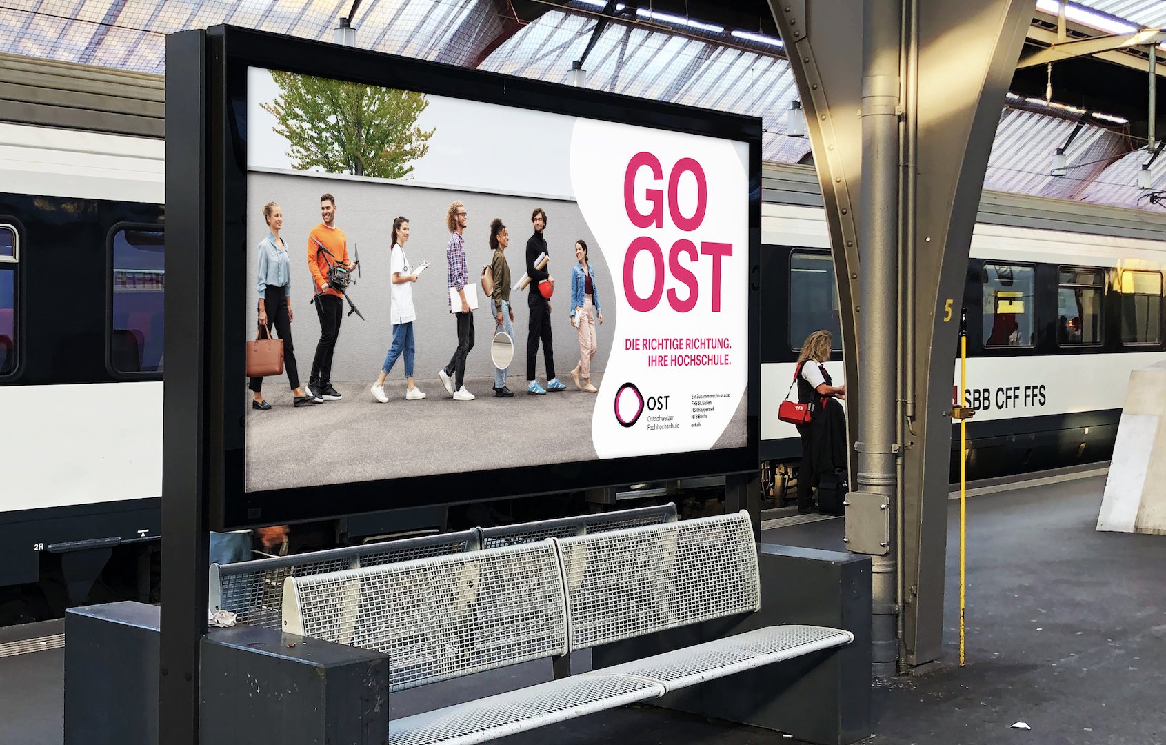 Wie kommuniziert man den Zusammenschluss dreier individueller Hochschulen zu einem Bildungszentrum für die Zukunft? Mit einer klaren Richtung, einem motivierenden Leitspruch und einer persönlichen Note. Darum haben wir für die Ostschweizer Fachhochschule OST nicht nur ihren neuen Auftritt konzipiert und umgesetzt, sondern dabei auch auf das gesetzt, worauf es wirklich ankommt: die Menschen.