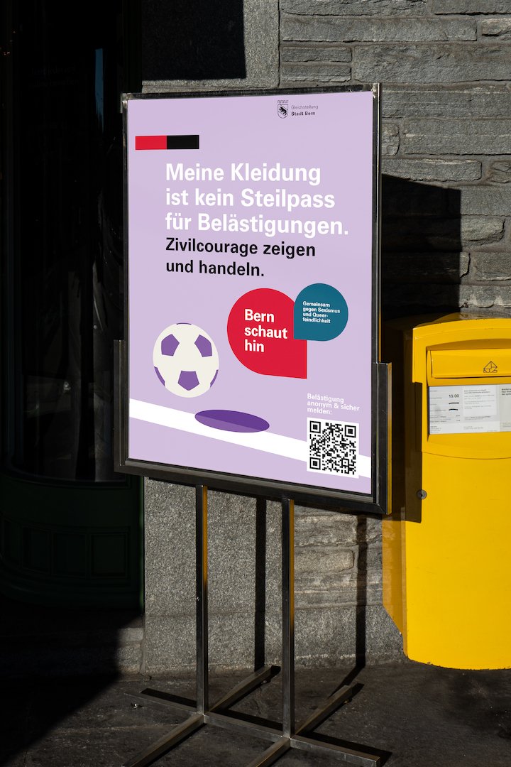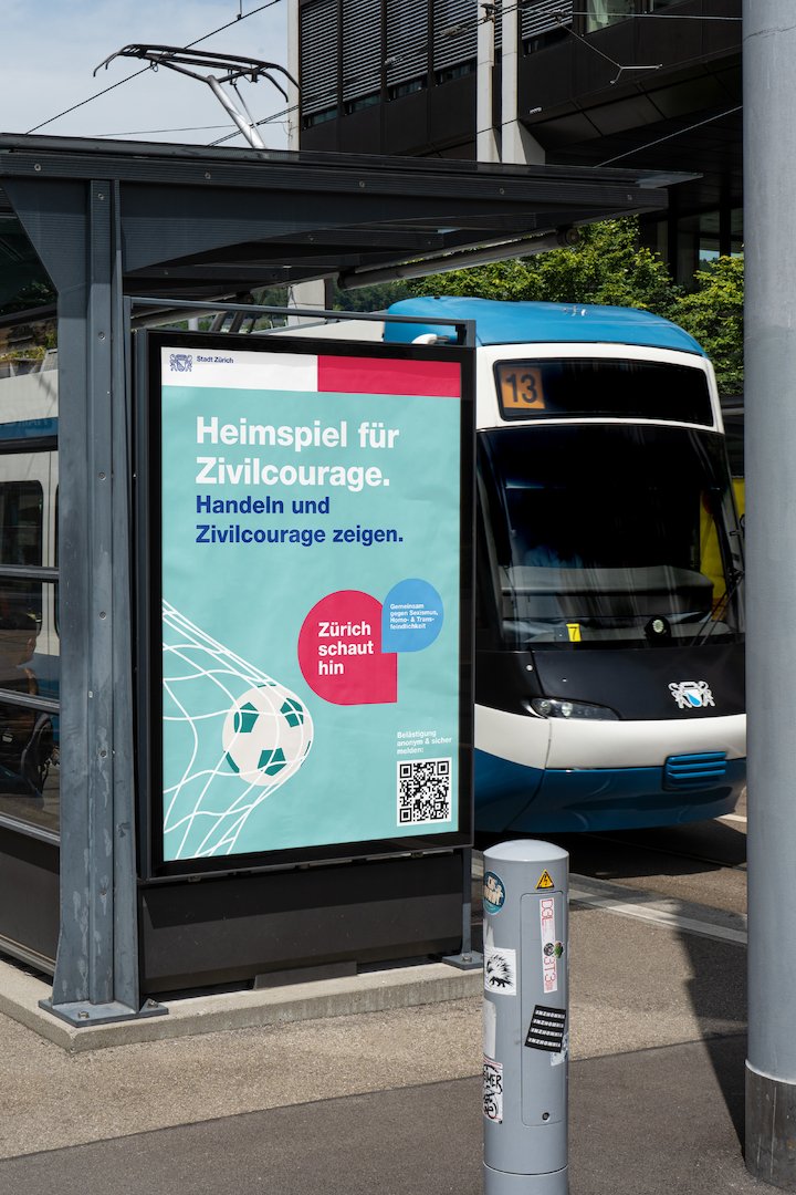In Form von Plakaten, DOOH, Display-Ads, auf Social Media sowie in diversen Fan-Zonen konnte die Kampagnen während der Frauen-Fussball-EM 2025 ein klares Zeichen gegen Sexismus und Diskriminierung setzen und auf direkte, aber doch leicht verspielte Art, zur Zivilcourage bei sexistischen Übergriffen sowie Queer-Feindlichkeit aufrufen.
